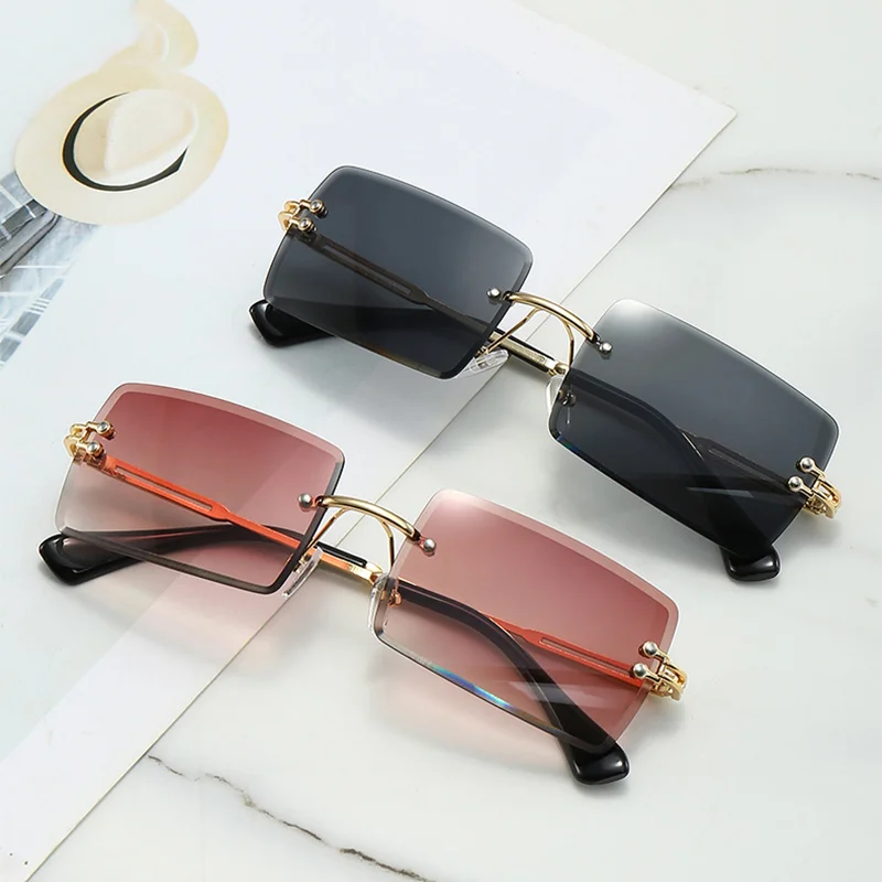Rimless Sunglasses Women 2024 Designer Square Sun Glasses Summer Decorative Rectangular Frameless Eyeglasses Accessories