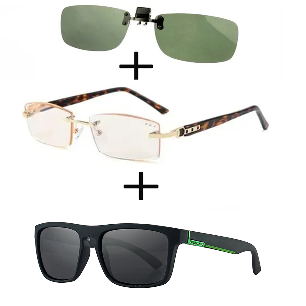 The 3Pcs!!! Titanium Gentleman Diamond Cut Reading Glasses Men Women + Polarized Sunglasses Squared Ultralight + Sunglasses Clip +75-Black set from Mozaer has been a game-changer for me. The titanium reading glasses are incredibly lightweight and comfortable. The polarized sunglasses clip is easy to attach and provides excellent sun protection. The squared design is stylish and suits my face shape perfectly. It's incredibly convenient to have both reading glasses and sunglasses in one set. The quality is impressive, and the price is reasonable considering everything you get. I appreciate that Mozaer offers solutions like this, making my life a little easier.